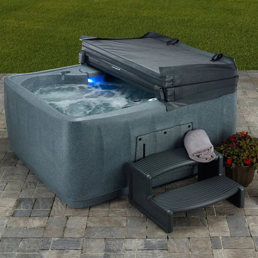 Aquarest Spas Premium 150 Hot Tub Spa 4-Person Plug and Play 12 Jets, Ozone and LED Waterfall, & Tub Cover, Graystone